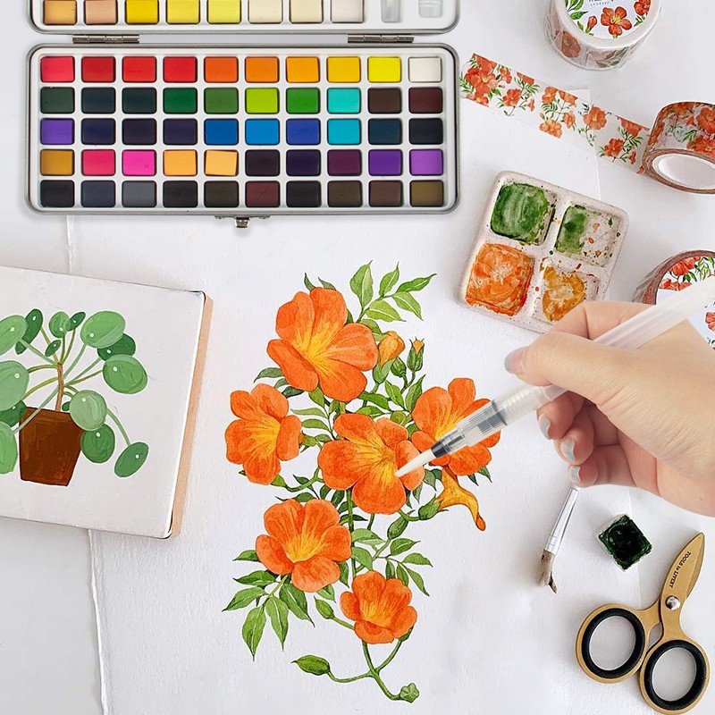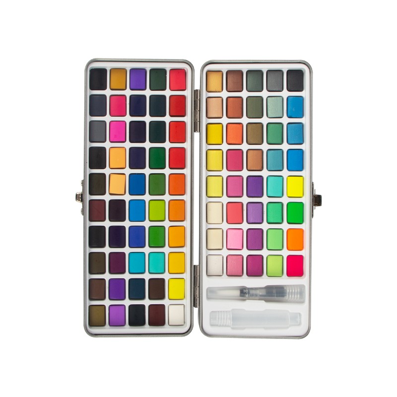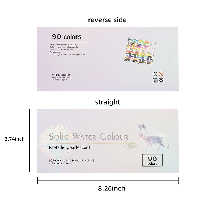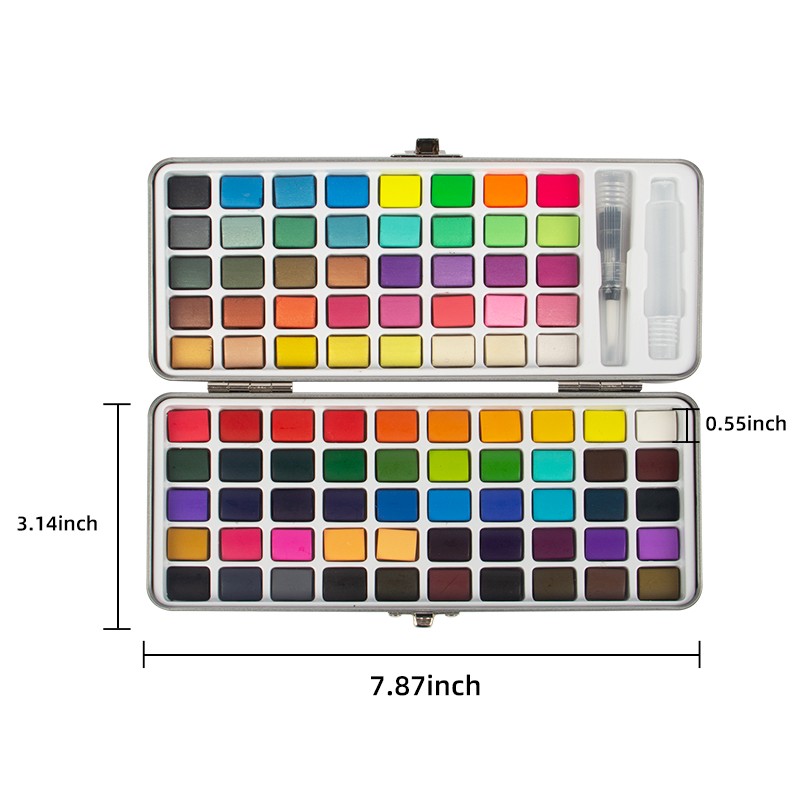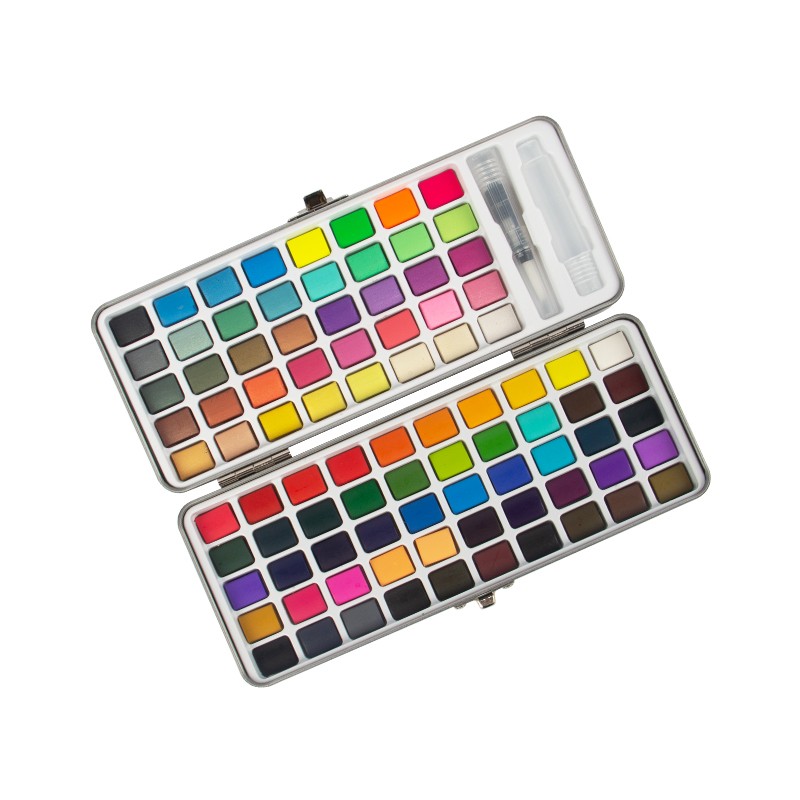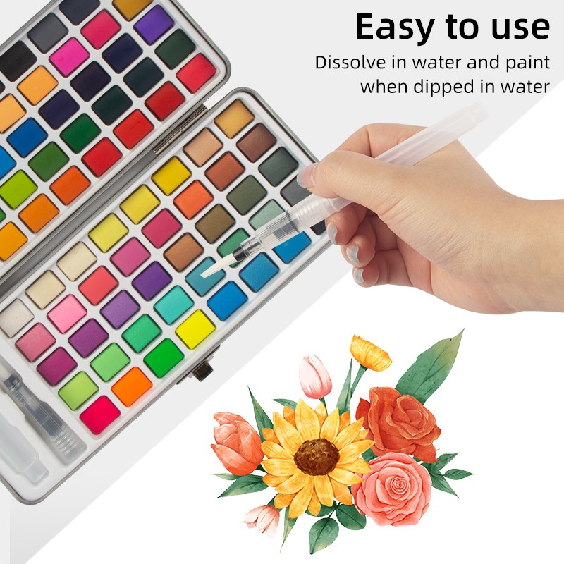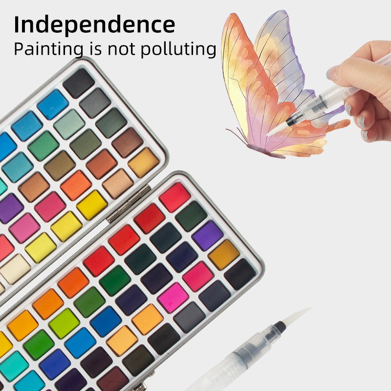 Set cat air mudah alih yang sempurna, set cat air perjalanan muktamad dengan kotak pembawa padat, bersaiz-3.74*8.26 in, bekas logam yang kukuh tidak akan mengambil banyak ruang dalam beg anda, ringan dan mudah alih. Set Cat Air 90 Warna Dengan Kotak Hadiah, yang terletak dengan cantik di dalam kotak hadiah, telah dipeluk oleh ramai artis. Sama ada dalam perjalanan atau di rumah, dalam persekitaran desa yang tenang, taman yang meriah, pantai berpasir, taman yang subur atau pemandangan bandar yang sibuk, artis mendapat kebebasan untuk menikmati minat mereka untuk melukis di mana sahaja mereka merayau.